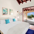 Bedroom 5: Bedroom with a king-size bed, A/C, ceiling fan, ocean view, access to the pool terrace and en-suite bathroom bathtub, shower, vanity, and WC. 2 guests maximum.
