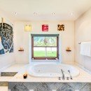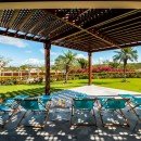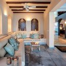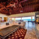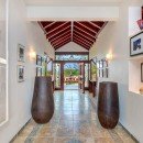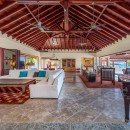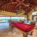 Then, there are the luxuries to be enjoyed inside! Begin beneath the extensive portico that runs the length of the terrace. Here you have formal al fresco dining, casual lounges and more. They all open into the enormous great room, decorated in a flawless blend of island and Colonial styles, and using lots of natural materials to pair beautifully with the stone floors, wooden ceilings and warm palette throughout. The great room offers a piano area, large lounges, and even a pool hall. It opens to the terrace and is a delight even if you are whipping up meals or snacks.