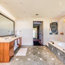 Bedroom 1: Master bedroom with a king-size bed, A/C, ceiling fan, TV, ocean view, walk-in closet, access to the pool terrace, and en-suite bathroom with Jacuzzi bathtub, outdoor shower, double vanity, and WC. 2 guests maximum.