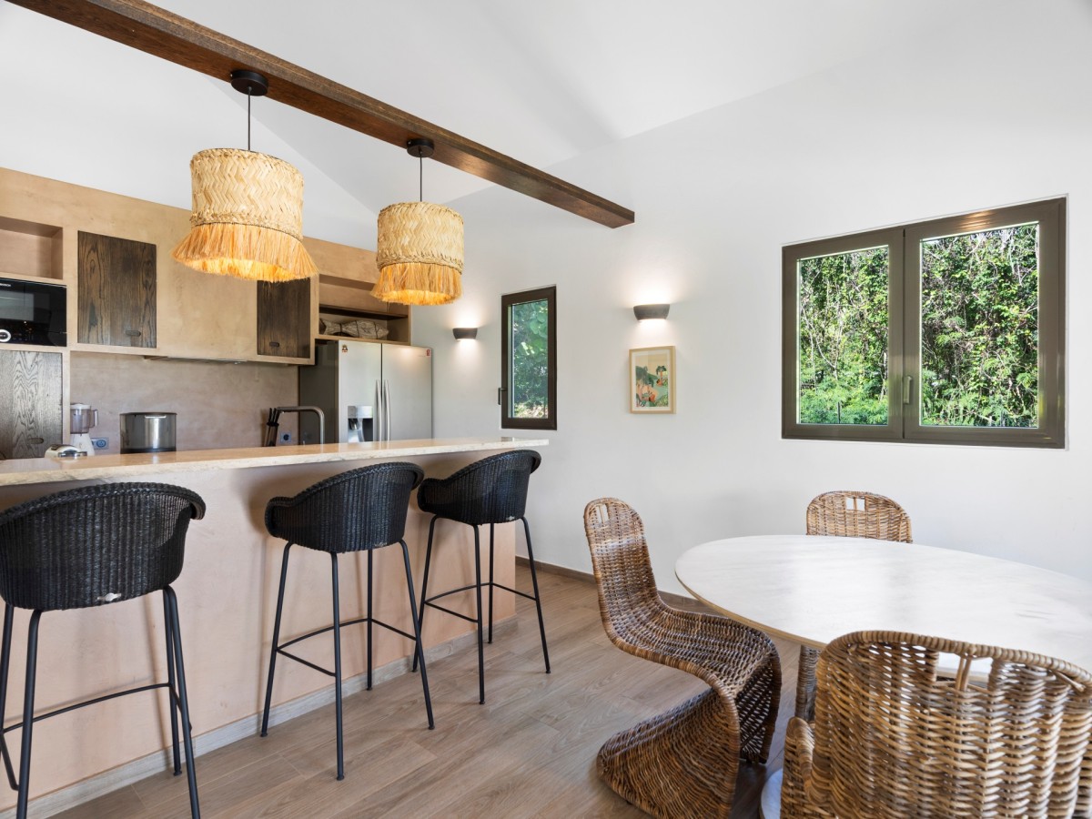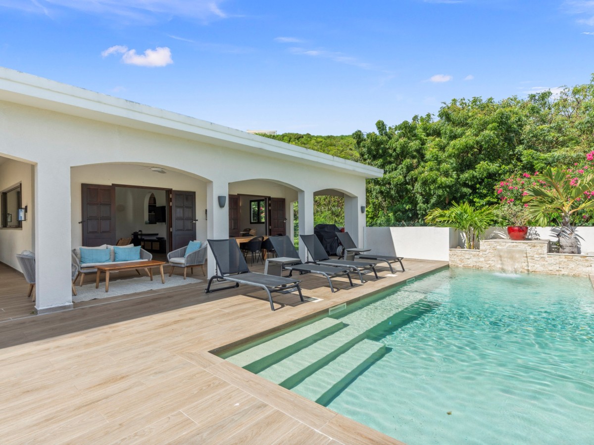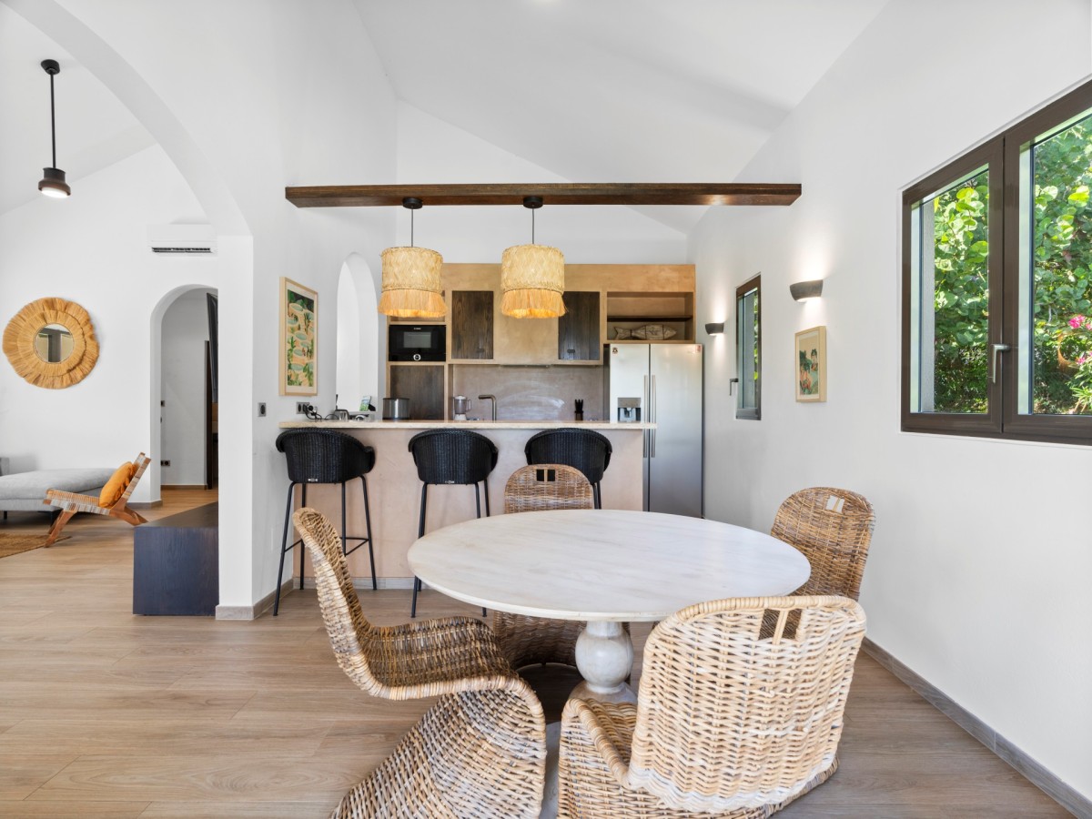 The villa’s private pool terrace is a personal paradise, surrounded by lush greenery and framed by ocean vistas. Whether you prefer sunbathing by the pool or dining alfresco as the sun sets over the Caribbean, Casa Capriolo delivers a seamless blend of comfort and coastal elegance.