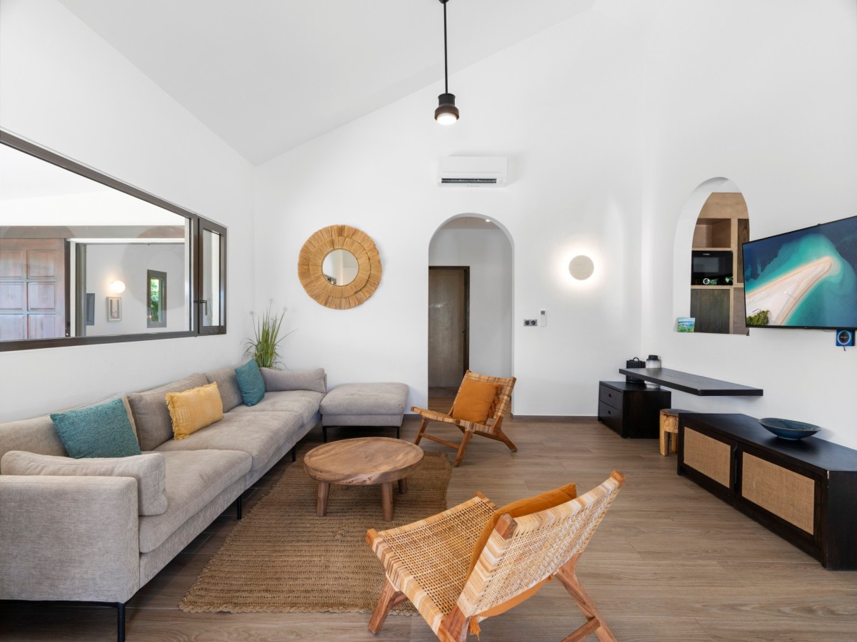 Nestled directly on the sands of Baie Rouge Beach, Villa Casa Capriolo is a two-bedroom, two-bath contemporary haven offering 1,000 square feet of understated elegance. Its natural yet modern décor creates a soothing, sophisticated ambiance — a true sanctuary for guests seeking rejuvenation from the everyday.