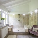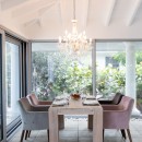 The light and airy interior features rich decor that blends classical styling with contemporary design features and artistic elements. A neutral color palette highlighted by a mix of beiges and whites is accented with interesting fabrics and decorative touches like candelabra lamps, indirect lighting, sculptured pieces and graceful furniture.