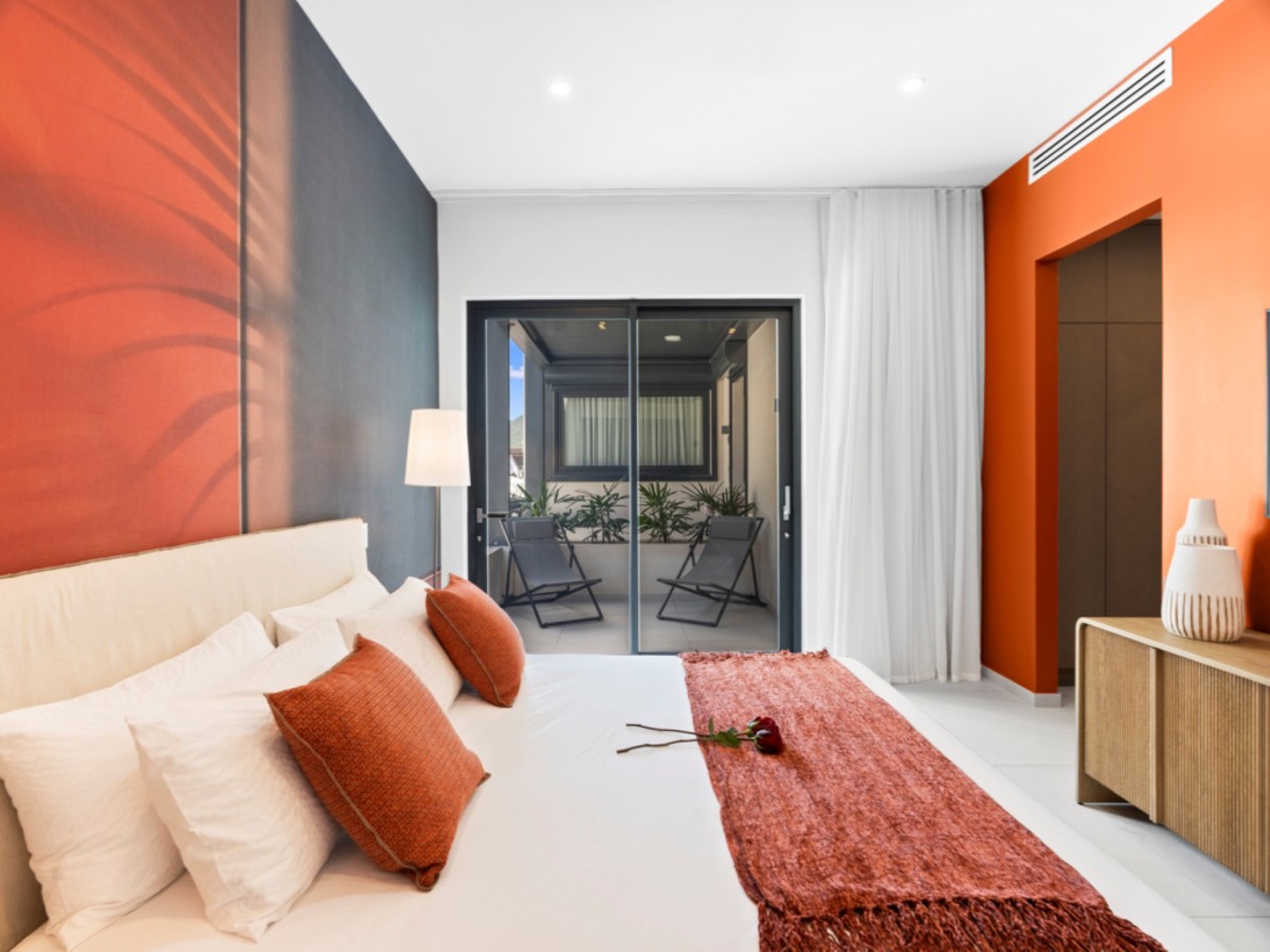 Bedroom 2: Bedroom with a king-size bed, A/C, TV, WiFi, and en-suite bathroom with shower, vanity and WC. 2 guests maximum.