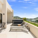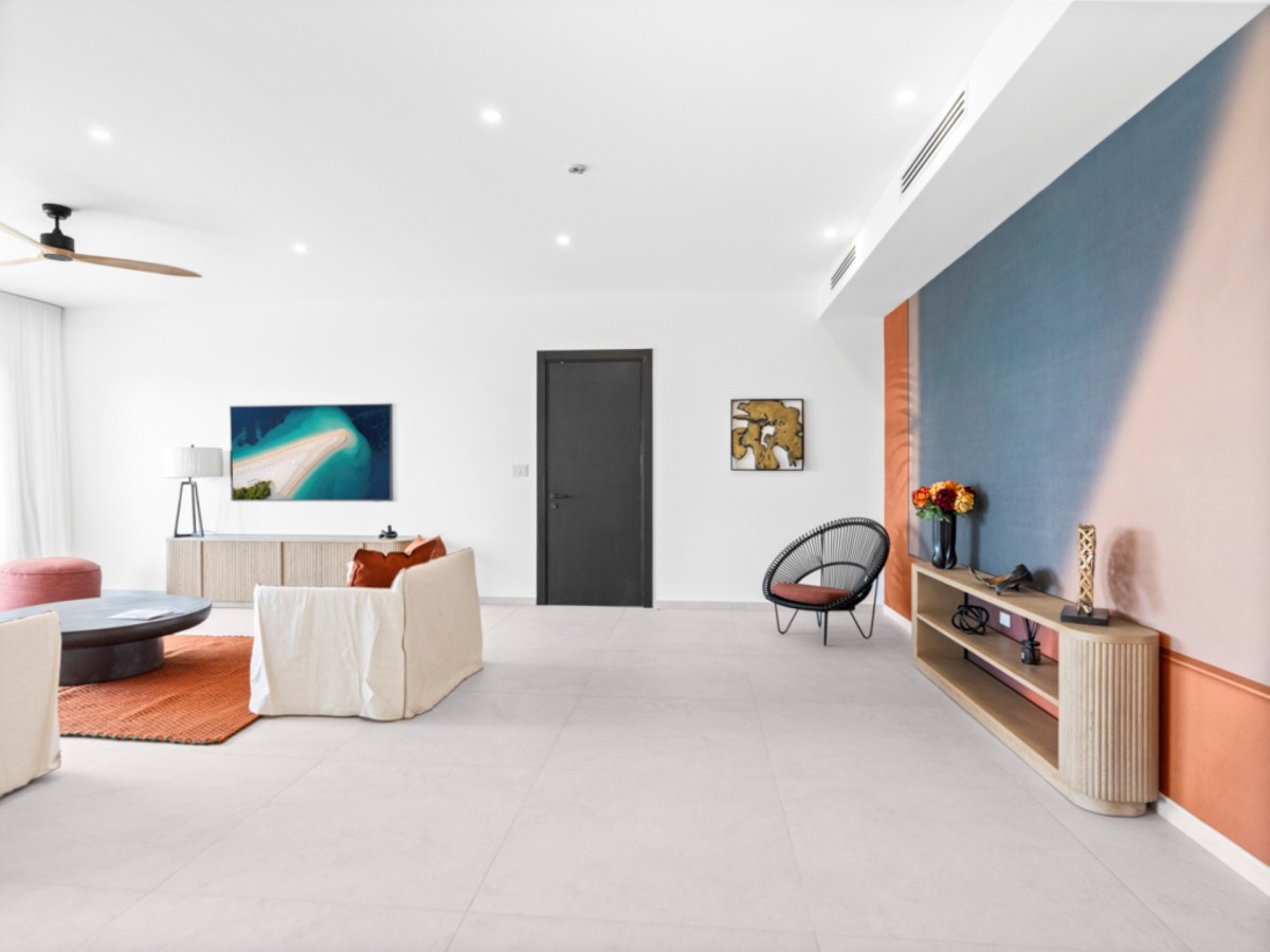 Inside, the penthouse opens via private elevator into a carefully curated space furnished with statement pieces from Restoration Hardware. Two generously proportioned bedrooms provide serene, private retreats, while the open living areas flow naturally onto an expansive terrace complete with jacuzzi—ideal for taking in sweeping views of the airport and the island's legendary sunsets.