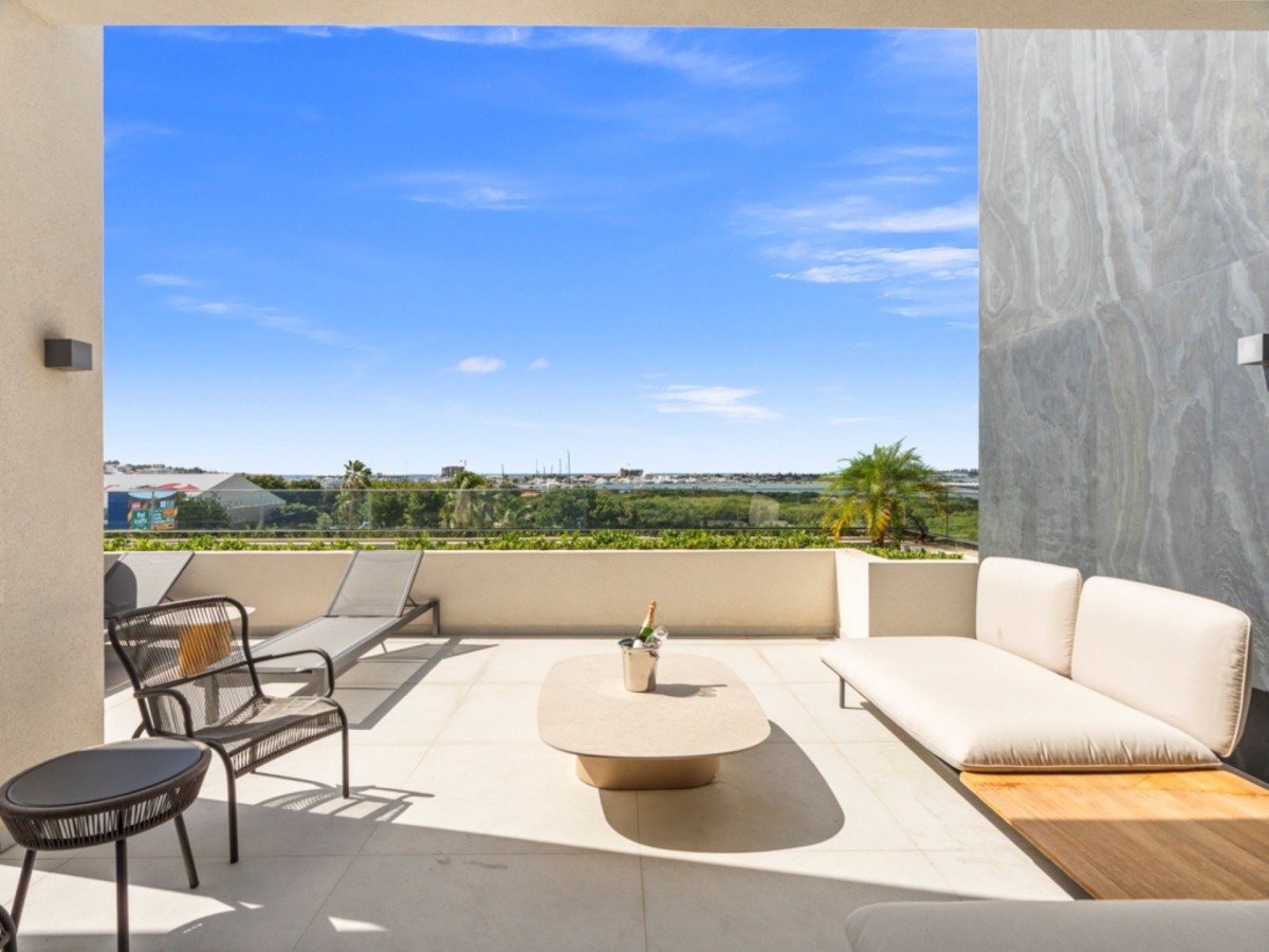 Perched atop the prestigious Ark Building, Penthouse Lunark offers a rare combination of sophistication and Caribbean ease. This two-bedroom residence sits at the heart of Sint Maarten's luxury retail and dining district, surrounded by iconic names like Rolex, Goldfinger, and Tag Heuer—placing world-class shopping and upscale cuisine just steps from your door.