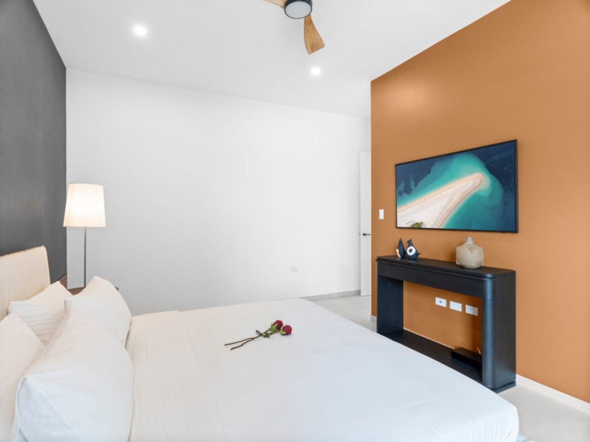 Bedroom 2: Bedroom with a king-size bed, A/C, TV, WiFi, and en-suite bathroom with shower, vanity and WC. 2 guests maximum.