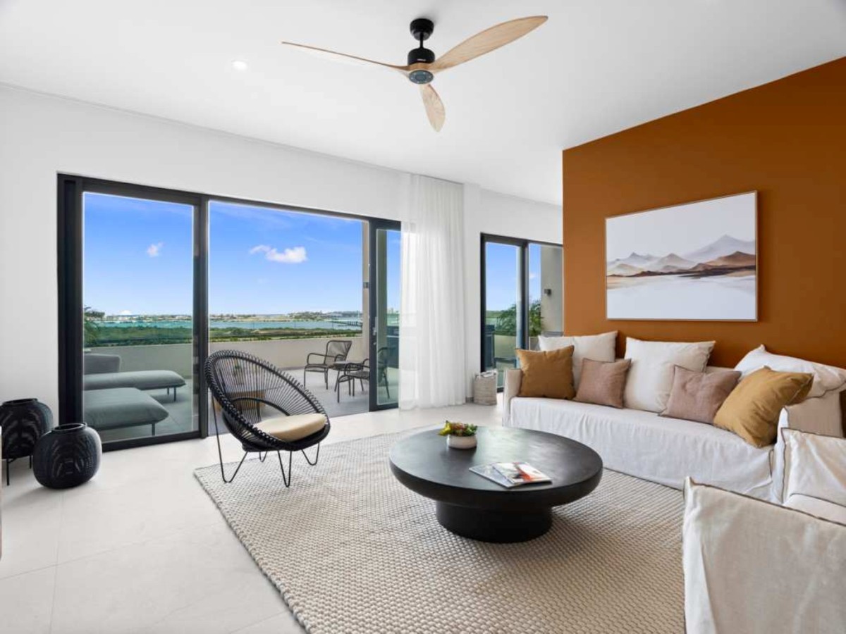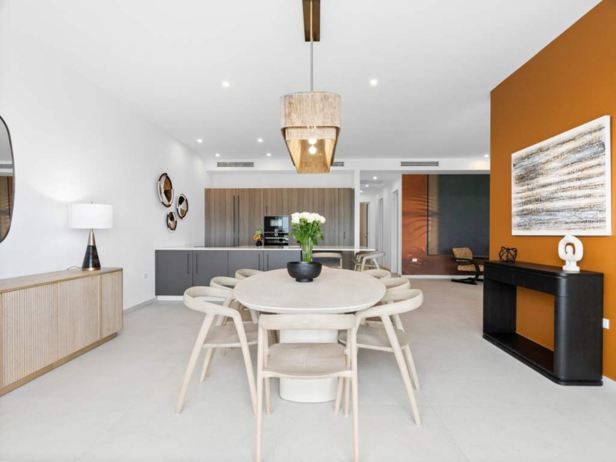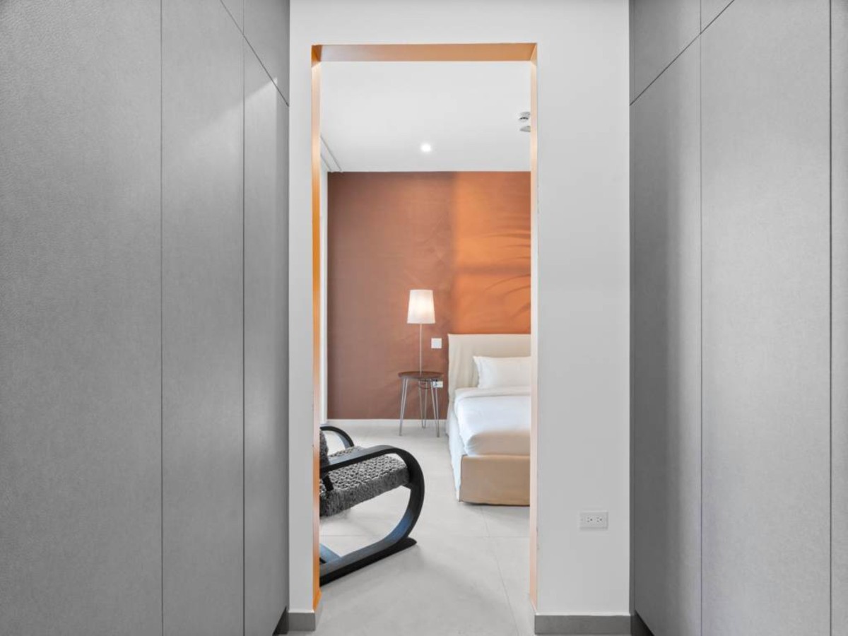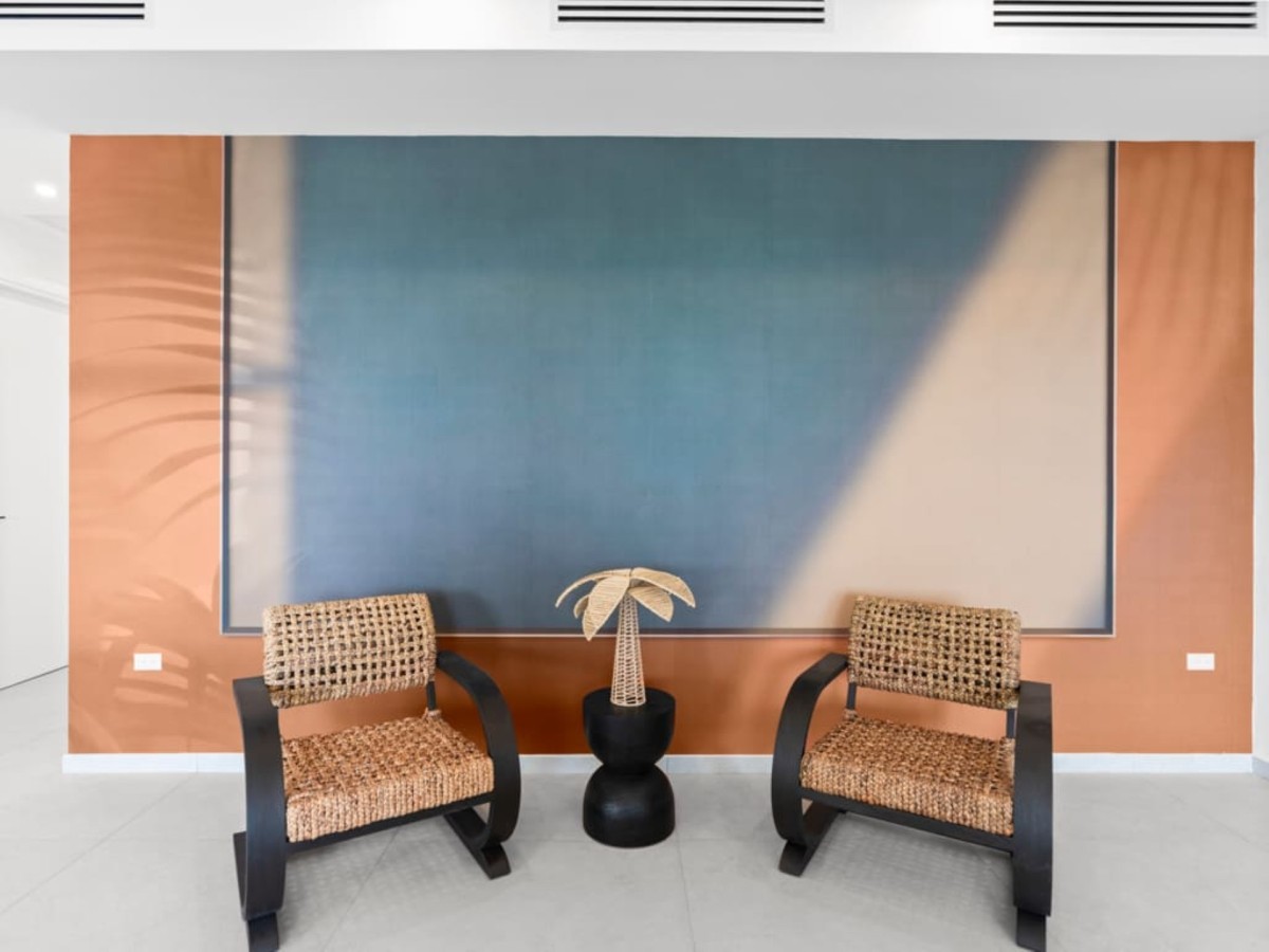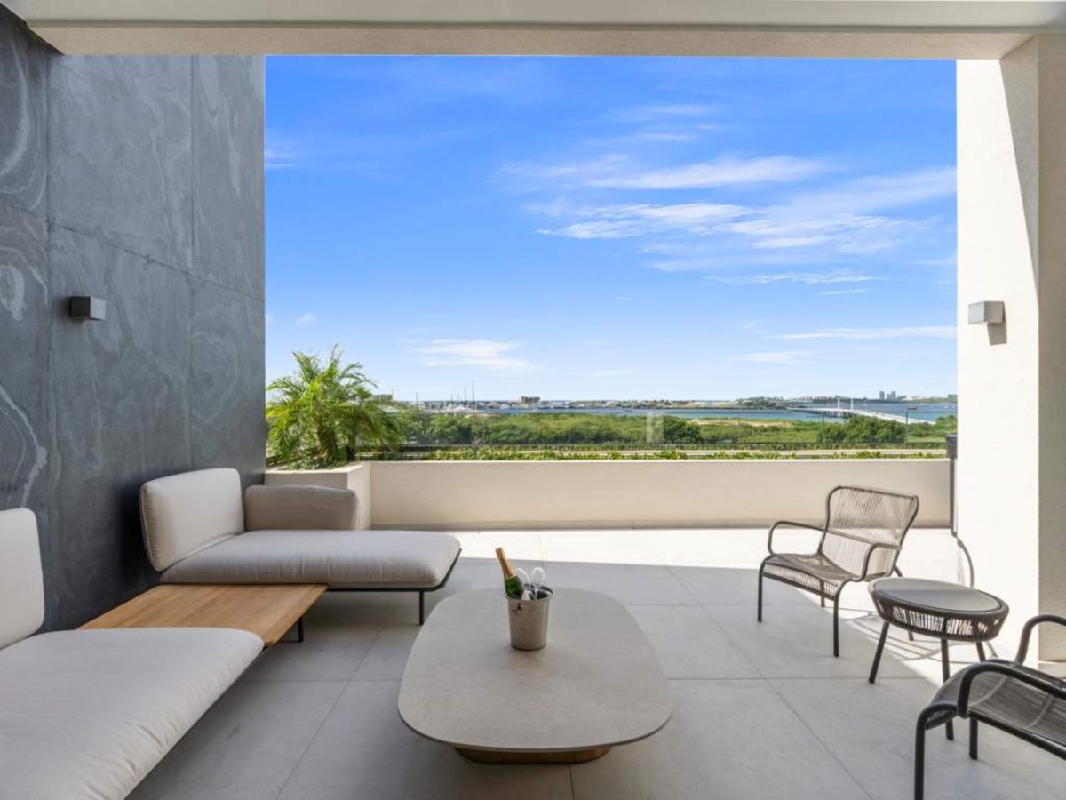 A private elevator opens directly into your residence, where thoughtfully curated Restoration Hardware interiors create an atmosphere of understated luxury. Two generously proportioned bedrooms provide serene sanctuaries, while expansive open-plan living spaces flow seamlessly onto a spacious terrace complete with jacuzzi—an ideal vantage point for capturing breathtaking airport vistas and magnificent Caribbean sunsets.
