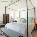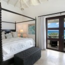 Each of the three king-sized bedrooms is air-conditioned and comes with an en-suite bathroom, shower, safe, television, and balcony. Stately, dark mahogany four-poster beds, vaulted ceilings, and glass doors to the balcony with ocean views make this the coziest nest with a birds-eye view in the Caribbean.