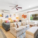 The expansive open-concept kitchen, dining, and living area are perfect for entertaining, with a dining table that seats 6-8, plus an additional outdoor table for intimate meals at sunrise or sunset. The villa is equipped with flat-screen TVs, DVDs, high-speed fiber optic WiFi, premium kitchen appliances, and a Weber stainless gas BBQ. For added convenience, provisioning, private chef, and catering services can be arranged upon request. The laundry room features a new ultra-large capacity LG Turbowash washer and dryer, along with a professional steamer and ironing board.