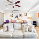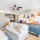 For larger gatherings, the villa includes a sizable ground-floor studio with separate outdoor access, accommodating up to 8 guests. This space can be rented separately or in conjunction with the main villa, making it ideal for family or friend getaways.