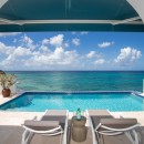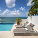 Step through the villa’s elegant entrance and your eyes are immediately drawn beyond the open-plan living space and sleek modern kitchen to the endless blues of Cupecoy Beach and the horizon beyond. The interiors flow seamlessly outdoors through wide wooden glass doors, leading to a spacious terrace and sundeck. The covered terrace, perfect for dining or lounging, features a retractable awning for shade, while just beyond, the private pool invites refreshing swims with sweeping ocean views. At sunset, the setting becomes magical, offering breathtaking panoramas and—if you’re lucky—the island’s famous “green flash.”