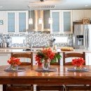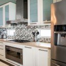 The living room comes with wooden doors with glass panels and widescreen television. It opens out into a terrace with outdoor dining, a gas grill, and views of nearby residences. The open plan kitchen is well-equipped with stainless steel appliances, tons of counter space, and a utility area with a wine cooler and second refrigerator.