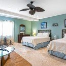 Sea Esta was renovated in 2019 and has a fourth bedroom in the basement that can be accessed straight from the garage area. This bedroom has a queen and a single bed and includes its own private bathroom with a shower, a microwave, and a refrigerator.