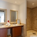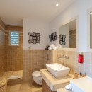 On the lower level, two beautifully appointed bedrooms open directly onto a private pool. Here, guests can unwind by the water while enjoying the soothing sea breeze. Each bedroom is equipped with an en-suite bathroom, ensuring privacy and tranquility throughout your stay.