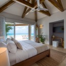 Bedroom 1: Bedroom with a king-size bed, ceiling fan, A/C, WiFi, TV, safe, dresser, private roof terrace, ocean view, and en-suite bathroom with bathtub, shower, hair dryer, double vanity, and WC. 2 guests maximum.