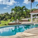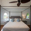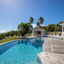 Villa Beauvoir on the island of St. Martin easily lives up to its name (beautiful view) with its location in the hills of Parc de la Baie Orientale. Gazing down towards the sea and the coast, it also frames wonderful views of the two islands off the coast (Tintamarre and Pinel). A four-bedroom gem of island design and décor, the recently renovated property is a destination all on its own. It takes its shape from the curve of the landscape and everything on the grounds seems to just flow with the existing scenery. Using natural wood, the structure is a unique blend of iconic tropical elements and classical style.