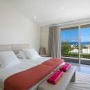 The swimming pool is elegant and appealing and is surrounded by a diversity of sun chairs and lounges. Whether you choose to relax beneath an umbrella or lay in the sun, it is an entirely private spot to while away the day. You can then head up to the great room area where an al fresco dining area opens to the comfortable salon. Here you will find a high end entertainment system and truly inspiring decor.