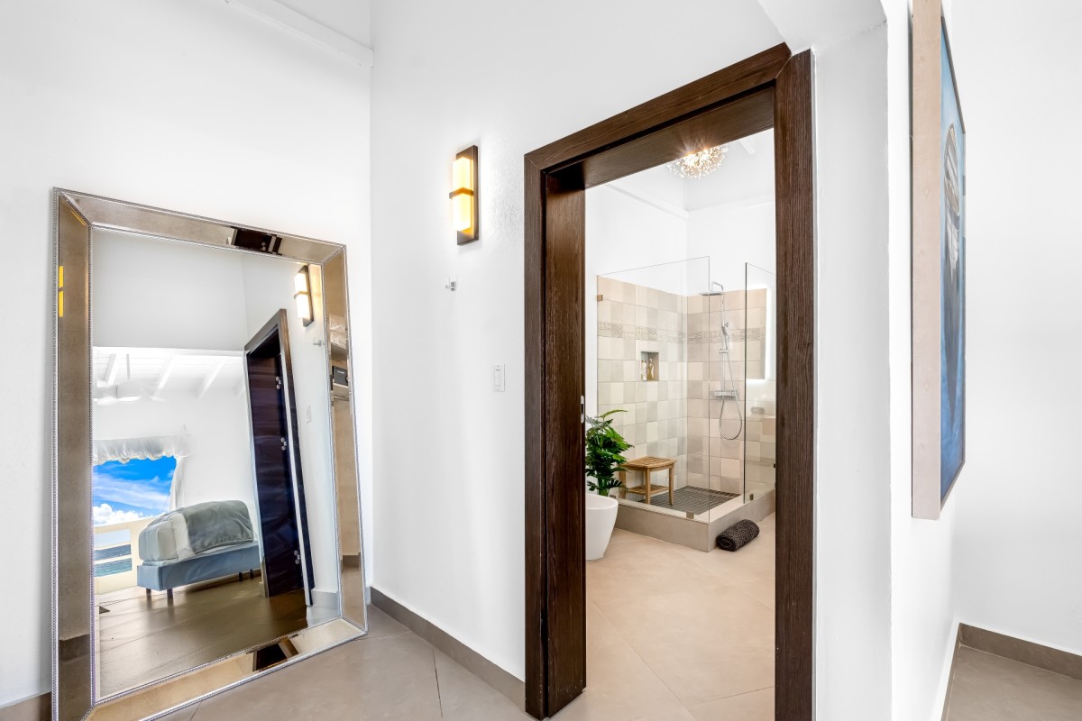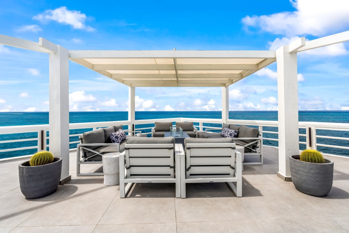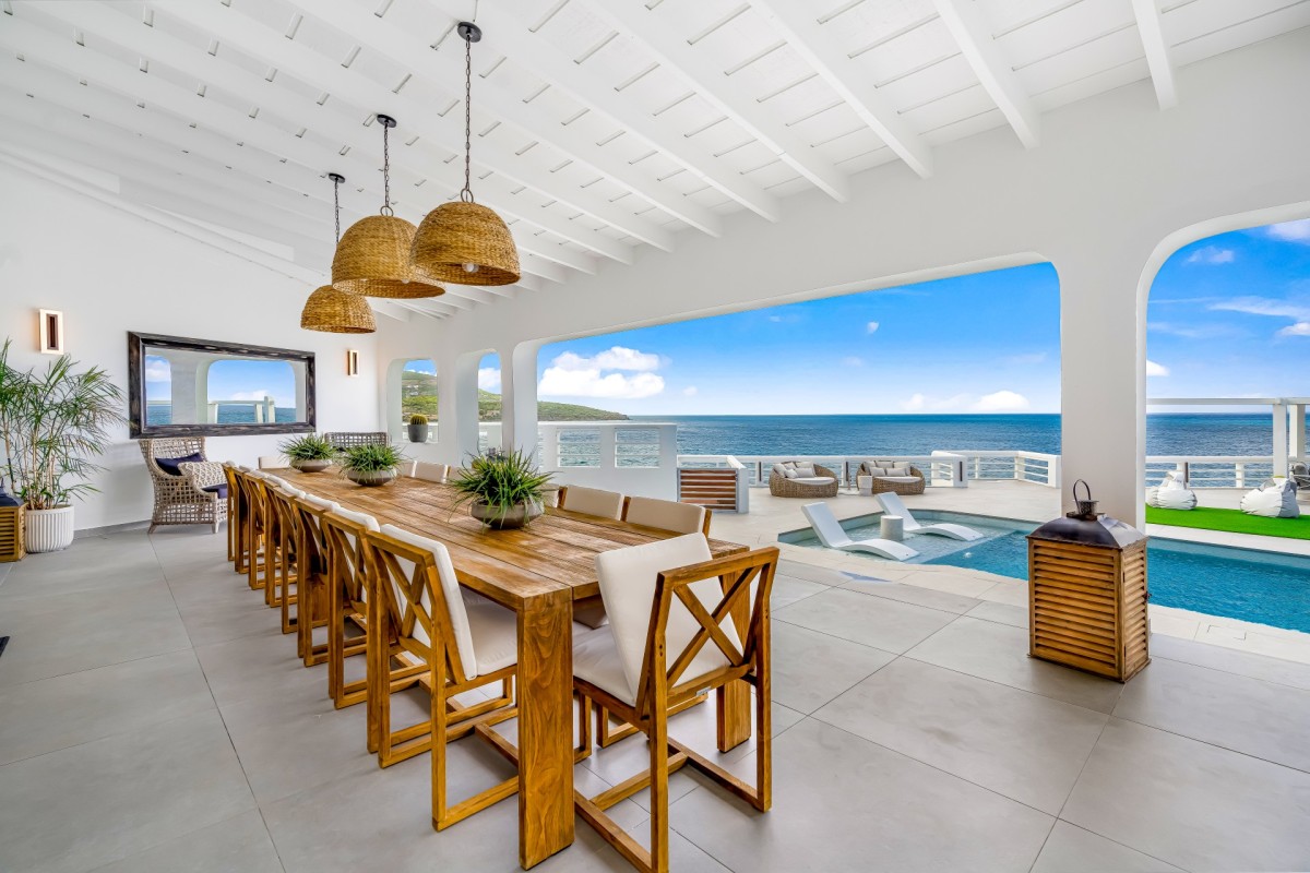 Outdoors, the expansive terrace and infinity pool invite guests to lounge, dine, or simply watch the sailboats drift by toward Saba and St. Eustatius. Shaded pavilions and quiet terraces offer serene spaces for morning yoga or peaceful reading.