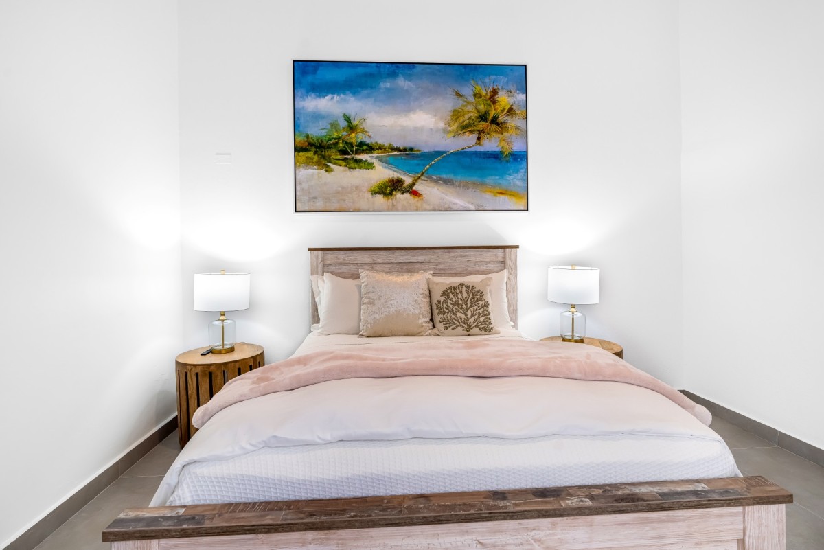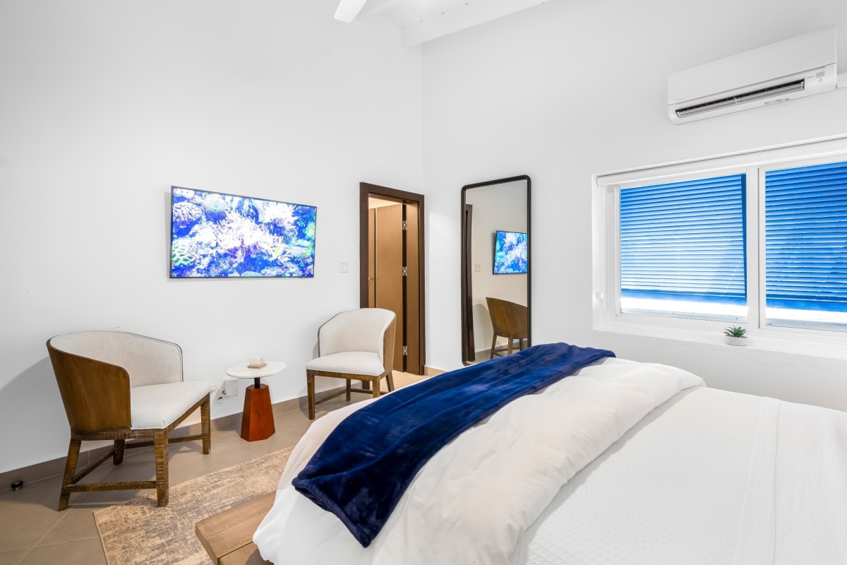 Bedroom 1: Master bedroom with a king-size bed, A/C,TV, and en-suite bathroom with shower, double vanity, and WC. 2 guests maximum.