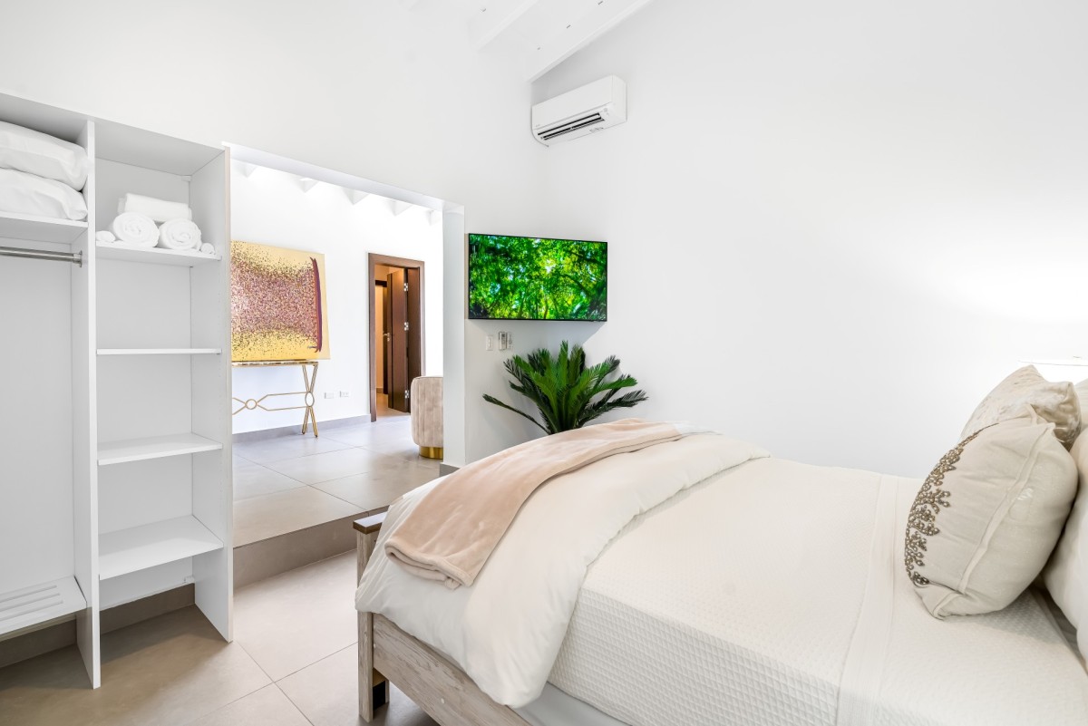 Bedroom 3: Bedroom with a king-size bed, A/C,TV, and en suite bathroom with shower, vanity, and WC. 2 guests maximum.