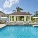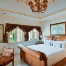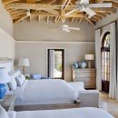 Available as an accommodation for up to 20 people, the property is divided between the beachside villa and a gardenside residence. The beachside property has five bedrooms, swimming pool, fitness center, private beach access, a media room, dining and living spaces for up to ten, an al fresco dining area, and a professional kitchen. Here you will also find the amazing two-floor master suite that has private balconies, a Jacuzzi tub, and office space.