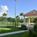 The gardenside villa has four bedrooms, with en suite bathrooms, a tennis area, and well designed living and dining spaces, too.