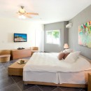 Bedroom 4 (Apartment): Lower floor bedroom with a king-size bed, living area, small kitchen, A/C, ceiling fan, TV, DVD, safe, walk-in closet, access to terrace and en-suite bathroom with shower, vanity and WC. 2 guests maximum.