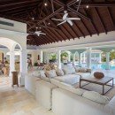 As one of the most sought after properties, the villa has an abundance of amenities that make it hard to resist. It starts with that private beach and boat dock facing into the lagoon. You make your way along a garden path to the villa, where you immediately encounter the splendid pool area and covered terraces.
