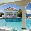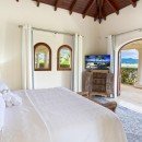 Just off the terrace, through pillared entrances you find the formal dining room, living room space, and complete gourmet kitchen. From inside of the villa you can access three of the six bedrooms. All of the bedrooms provide guests with the utmost privacy, and contain large and opulent en suite bathrooms, entertainment systems, and excellent views.