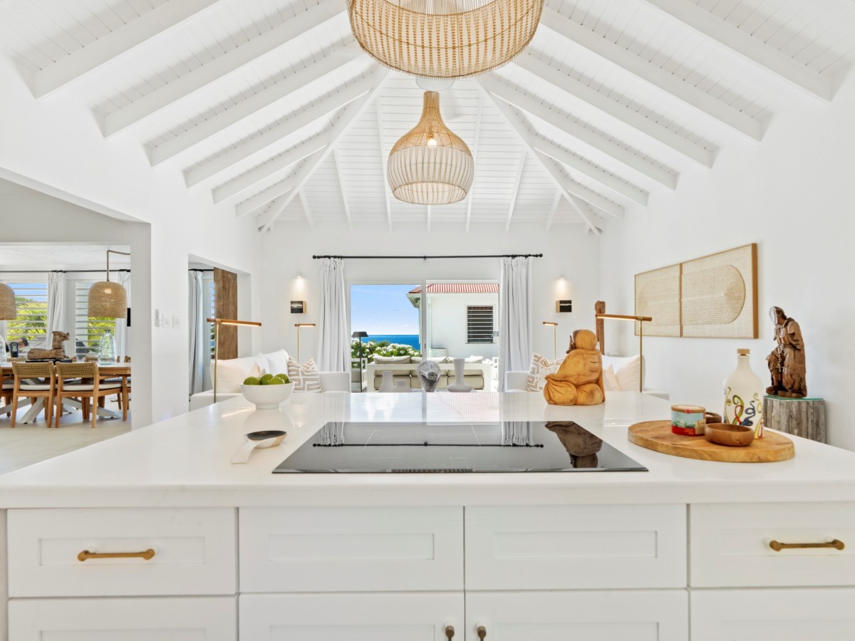From the expansive terrace, take in breathtaking views of the endless sky and sea, along with the stunning nearby islands of Saint Kitts, Saba, and St. Barts — creating the magical sensation of being aboard a luxurious yacht.