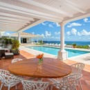 At the villa's center lies its most spectacular feature—a magnificent 50' x 20' heated swimming pool that ranks among the Caribbean's most impressive private pools. Strategically positioned to capture sweeping ocean panoramas and cooling trade winds, this aquatic haven serves as the villa's social and recreational centerpiece, equally enchanting for sun-soaked afternoons and romantic evenings under the stars.