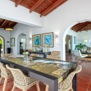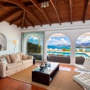 The villa's heart lies in its masterful integration of interior and exterior spaces. The expansive double living room flows effortlessly into an elegant formal dining area, distinguished by graceful archways that frame the sea beyond. This sophisticated indoor space connects seamlessly to multiple outdoor entertaining areas, creating an unparalleled environment for both relaxation and celebration.