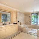 The villa's three generously proportioned master suites represent the pinnacle of tropical elegance. Each sanctuary features sumptuous Italian tumbled marble finishes and floor-to-ceiling windows that frame unobstructed ocean vistas—even from the spa-like en-suite bathrooms. Private terraces and secluded garden patios extend from each suite, offering guests their slice of paradise for morning coffee or sunset contemplation.