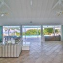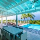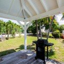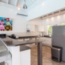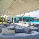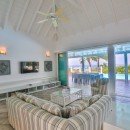The open floor plan of the main room features a full kitchen and a breakfast bar that opens to a large living room area. There is a formal dining spot indoors, but the entire great room spills over to the outdoor living spaces. Here you find a large lounge, an al fresco dining table, and the gorgeous swimming pool and sundeck. There is also a gazebo from which to enjoy meals as well as cocktails or morning coffee.