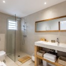 The villa boasts four generously appointed bedrooms, including two interconnected rooms, making it an ideal choice for families or close-knit groups. The master suite epitomizes indulgence, featuring a king-sized bed with poolside views and an en-suite bathroom adorned with a rejuvenating rain shower. The remaining three bedrooms offer plush accommodations, ensuring all guests revel in comfort and seclusion.