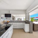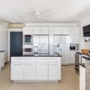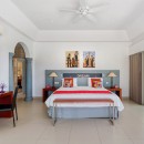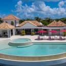 While the scenery will show you that you are in a truly remarkable spot, the facilities and design of the Villa Just in Paradise will grab your attention too. Decorated with a contemporary and clean aesthetic, the villa uses a pale palette accentuated with pops of color and modern art. The pool is a half moon, infinity pool equipped with a smaller infinity jet tub. Surrounded by one of the largest open pool decks on the islands, it will prove a constant destination for guests.