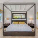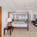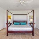 Bedroom 3: Lower floor bedroom with a king-size four-poster bed, A/C, ceiling fan, WiFi, TV, private covered terrace and en-suite bathroom with shower, vanity and WC. 2 guests maximum.