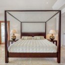 Bedroom 2: Upper floor bedroom with a king-size four-poster bed, A/C, ceiling fan, WiFi, TV, DVD, outdoor shower and en-suite bathroom with shower, vanity and WC. 2 guests maximum.
