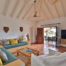 This five-bedroom villa exudes a blend of local charm and cozy decor, creating an inviting atmosphere for relaxation. Its expansive interior seamlessly merges with the outdoors, fostering a sense of liberation and communion with nature.