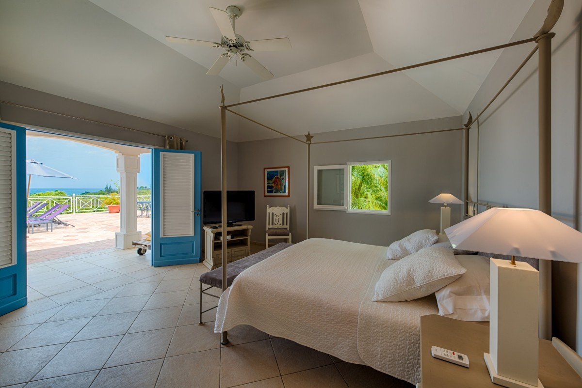 Bedroom 1: Bedroom with a king-size bed, A/C, ceiling fan, TV, access to terrace, ocean view and en-suite bathroom with shower, double vanity and WC. 2 guests maximum.