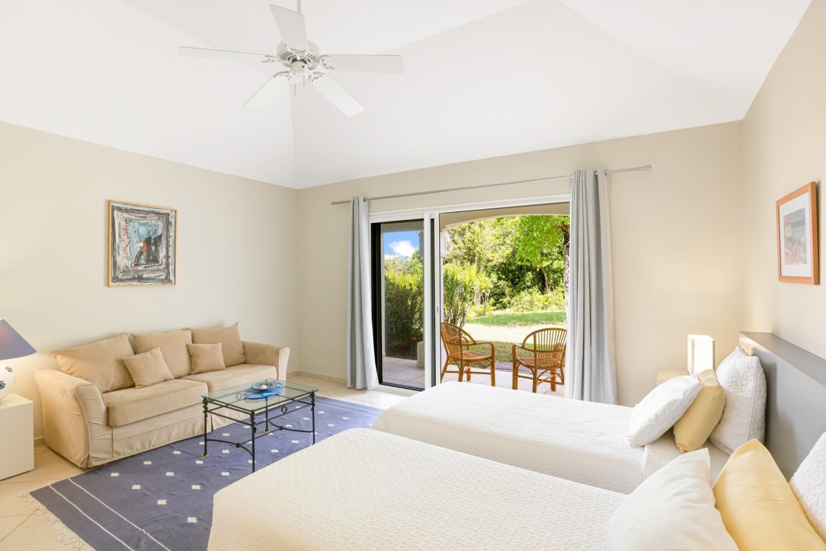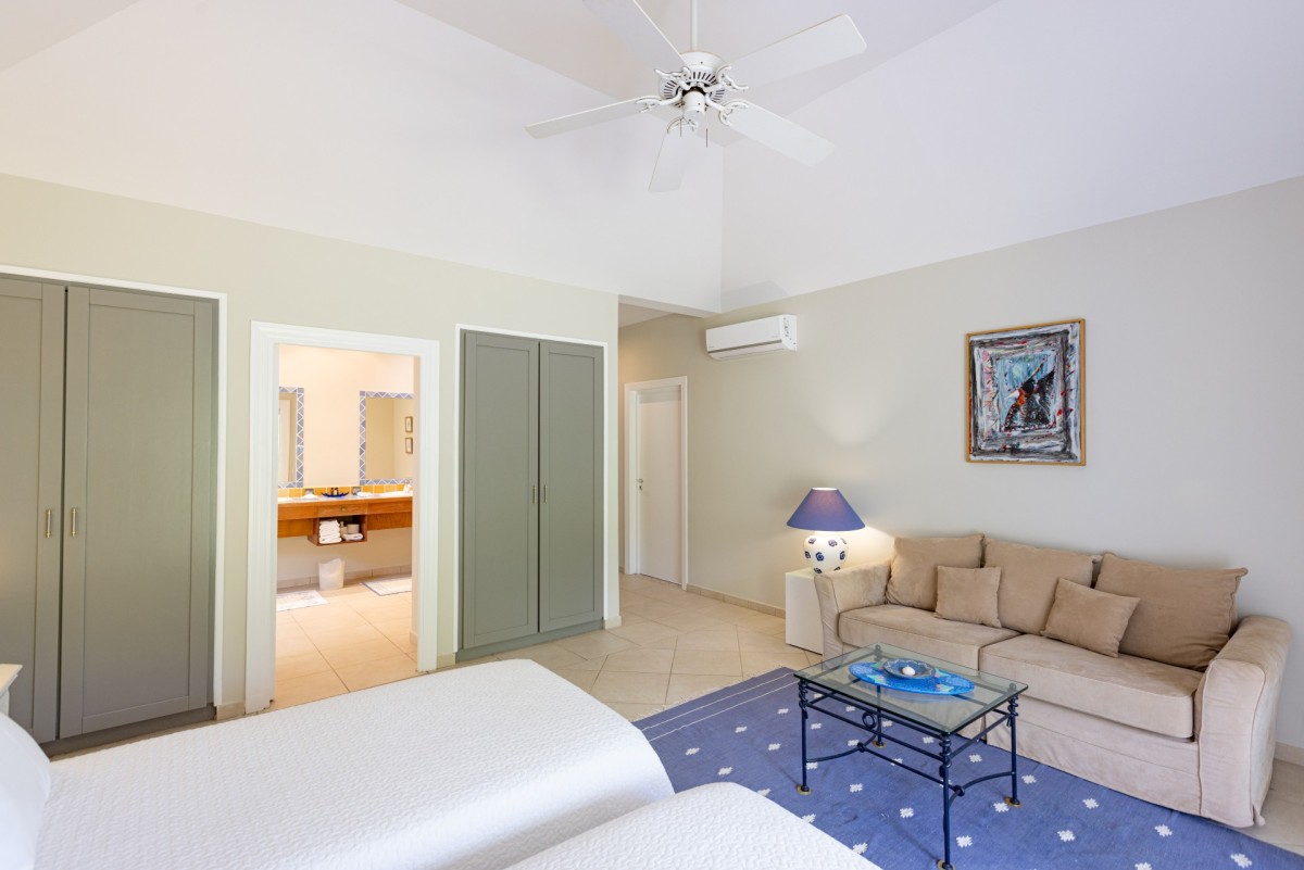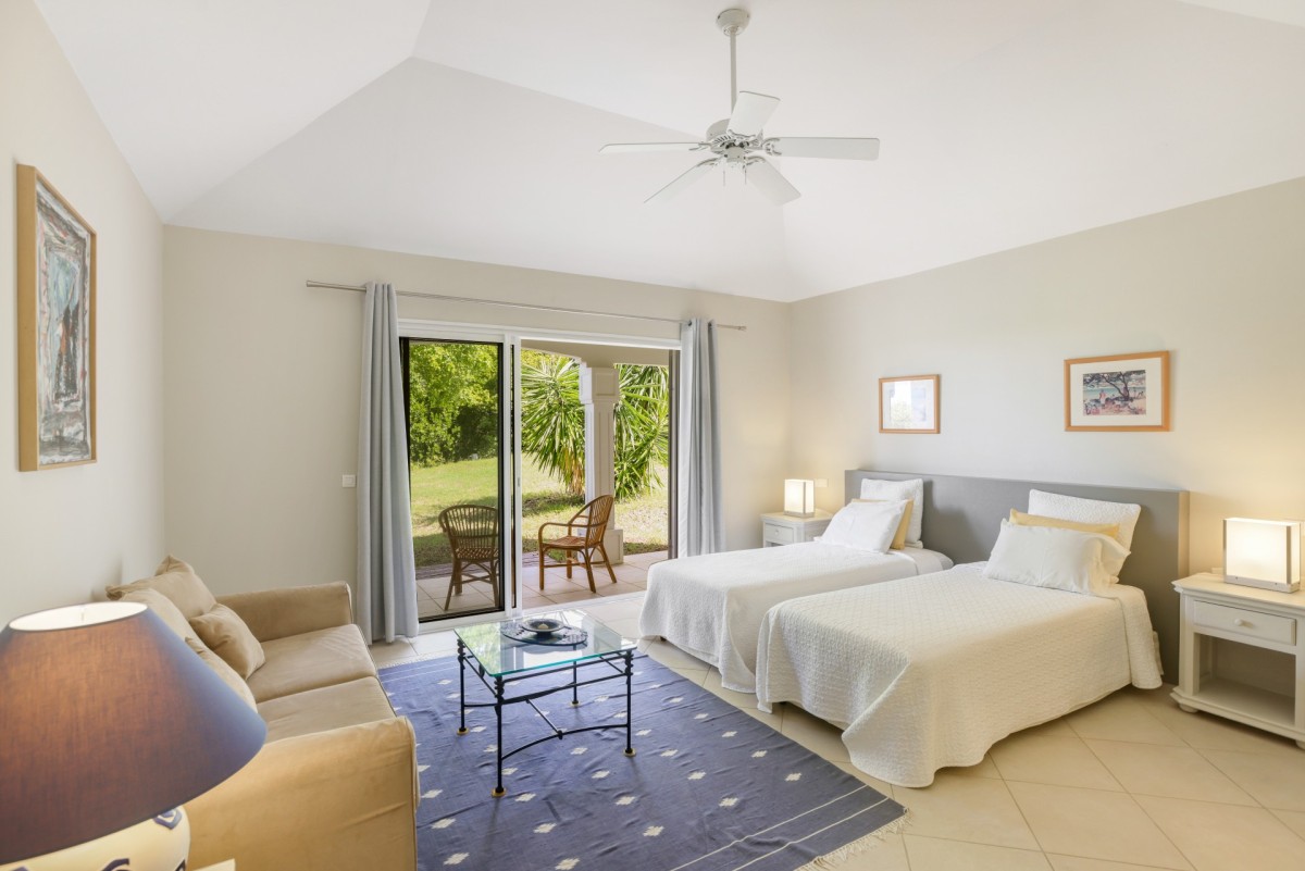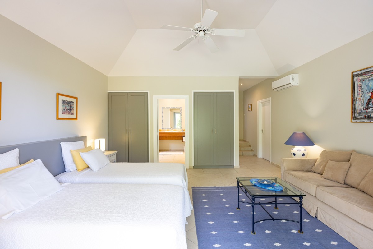 Bedroom 4: Bedroom with two single beds (can be made up as a king-size bed), A/C, ceiling fan and en-suite bathroom with shower, vanity and WC. 2 guests maximum.