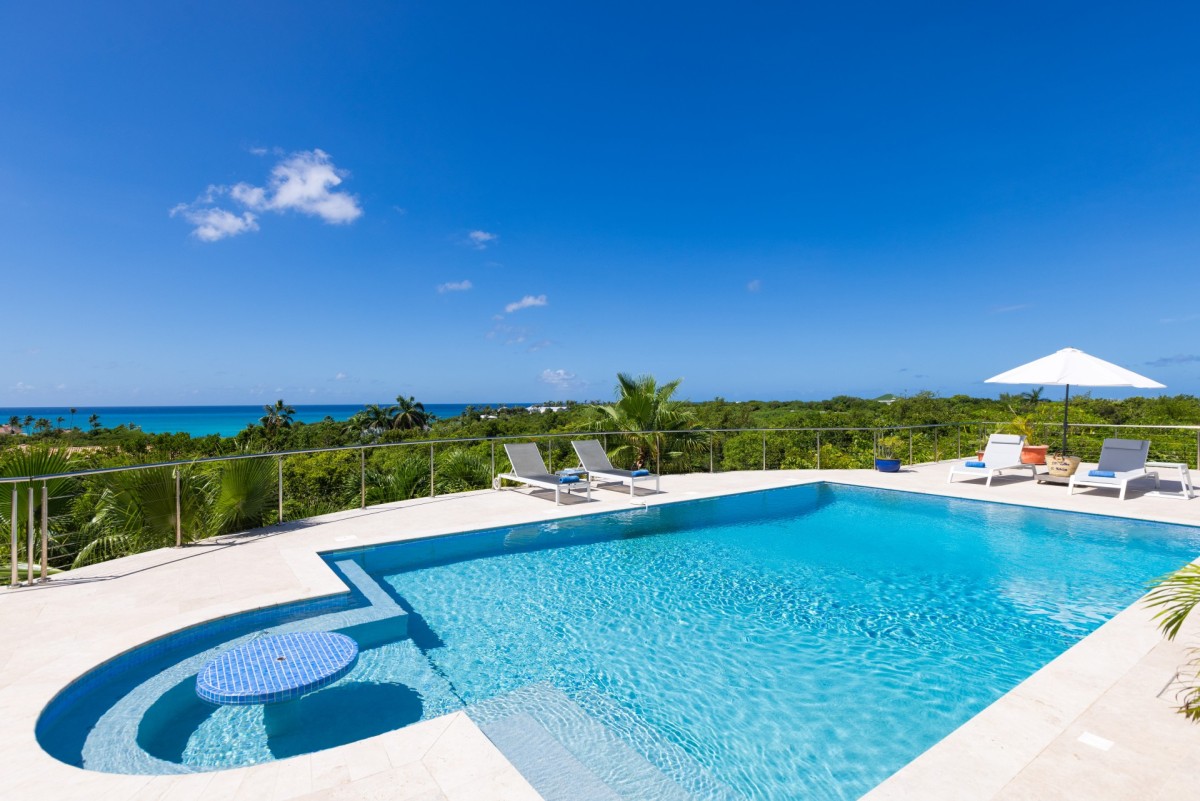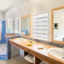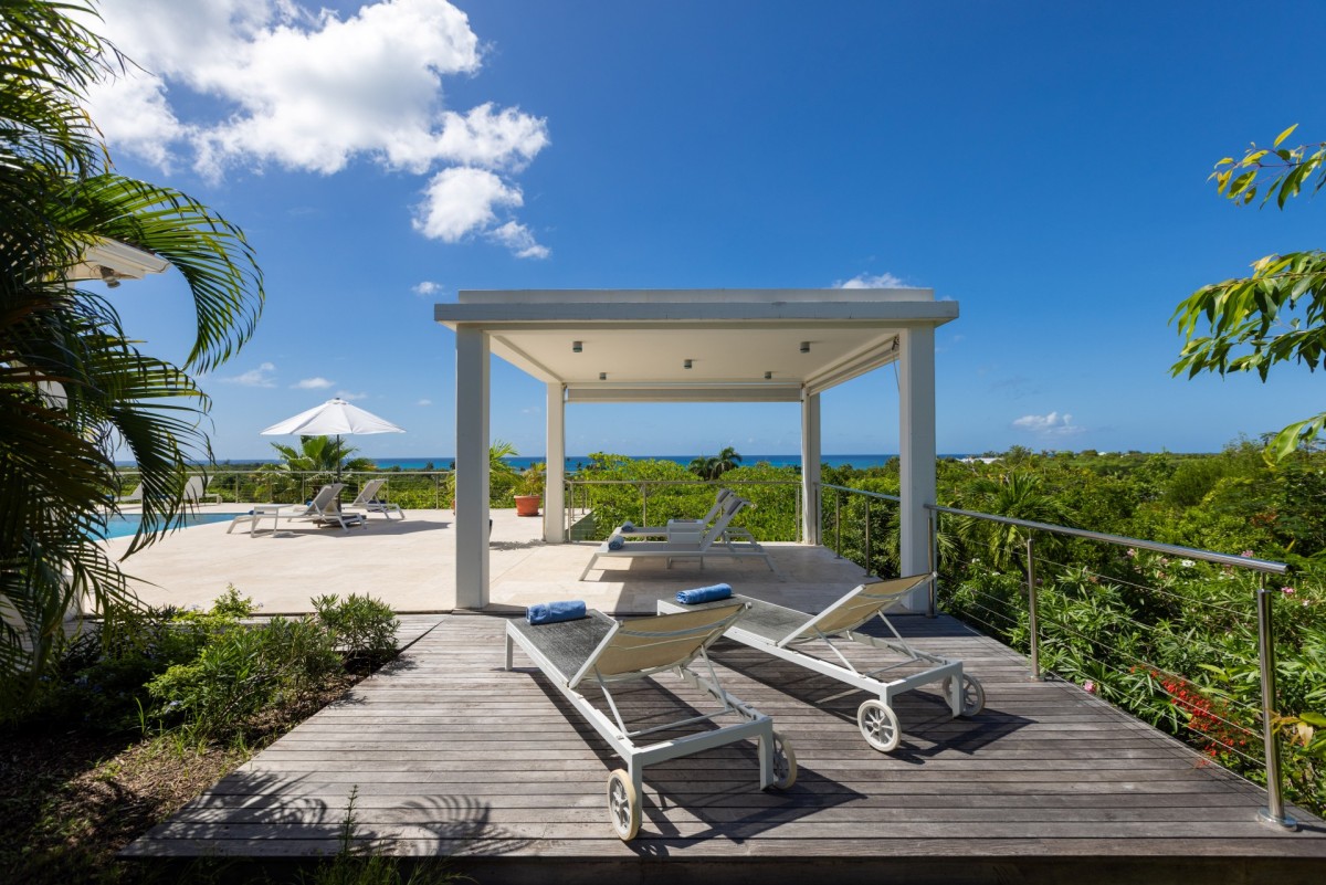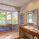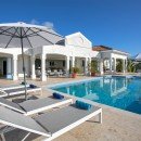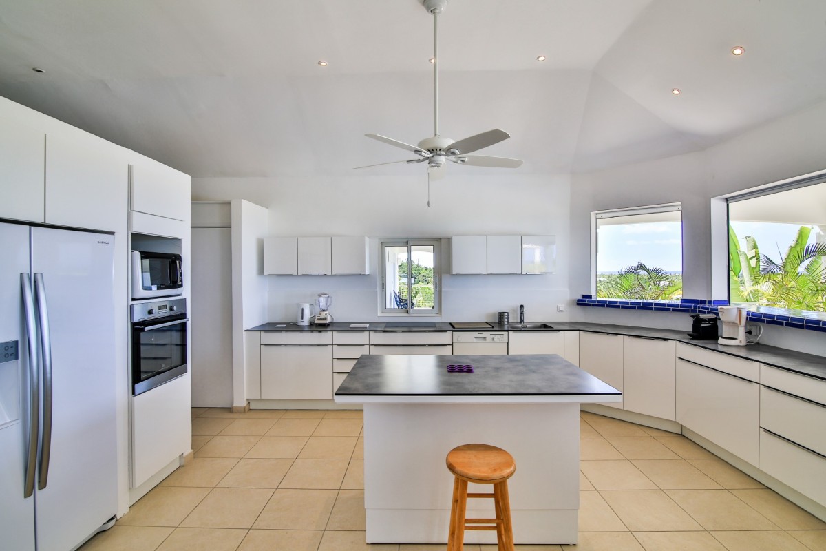 The home is truly defined by a light and airy ambience, clean design, spacious rooms and fabulous bathrooms. Then there is the state of the art kitchen fully equipped with all the necessary utensils to help you prep for the ultimate gourmet meal, offering bright blue tiled countertops and a delightful breakfast bar with sharp wrought iron bar stools. Just outside, there is a large furnished terrace just perfect for reading, napping or dining. A built-in table at the shallow end of the pool provides an ideal spot for just "hanging out". Beautiful Plum Bay Beach is located within a five minute walk of the villa.