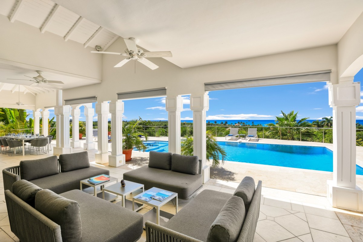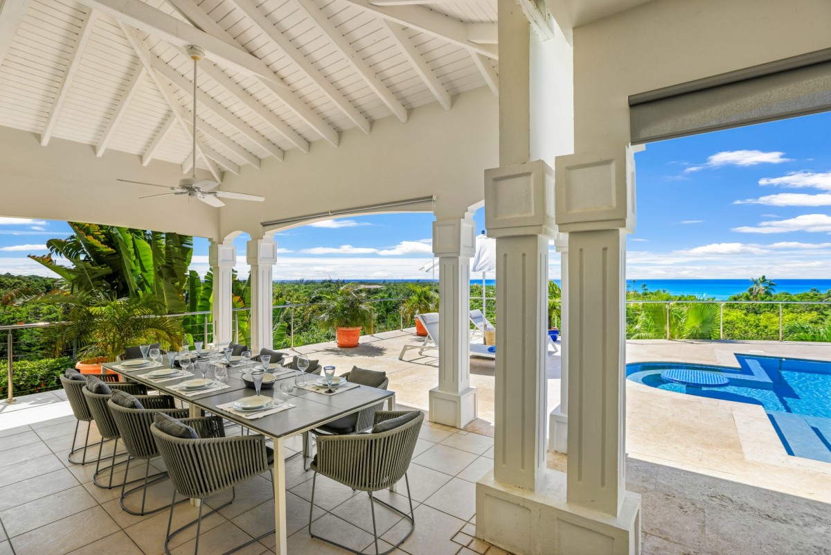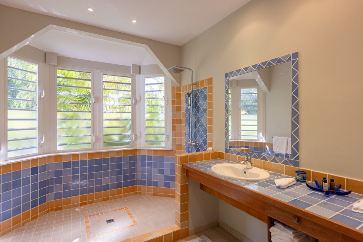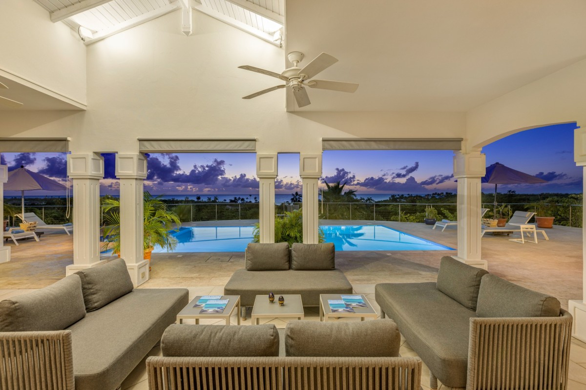 The home is truly defined by a light and airy ambience, clean design, spacious rooms and fabulous bathrooms. Then there is the state of the art kitchen fully equipped with all the necessary utensils to help you prep for the ultimate gourmet meal, offering bright blue tiled countertops and a delightful breakfast bar with sharp wrought iron bar stools. Just outside, there is a large furnished terrace just perfect for reading, napping or dining. A built-in table at the shallow end of the pool provides an ideal spot for just "hanging out". Beautiful Plum Bay Beach is located within a five minute walk of the villa.