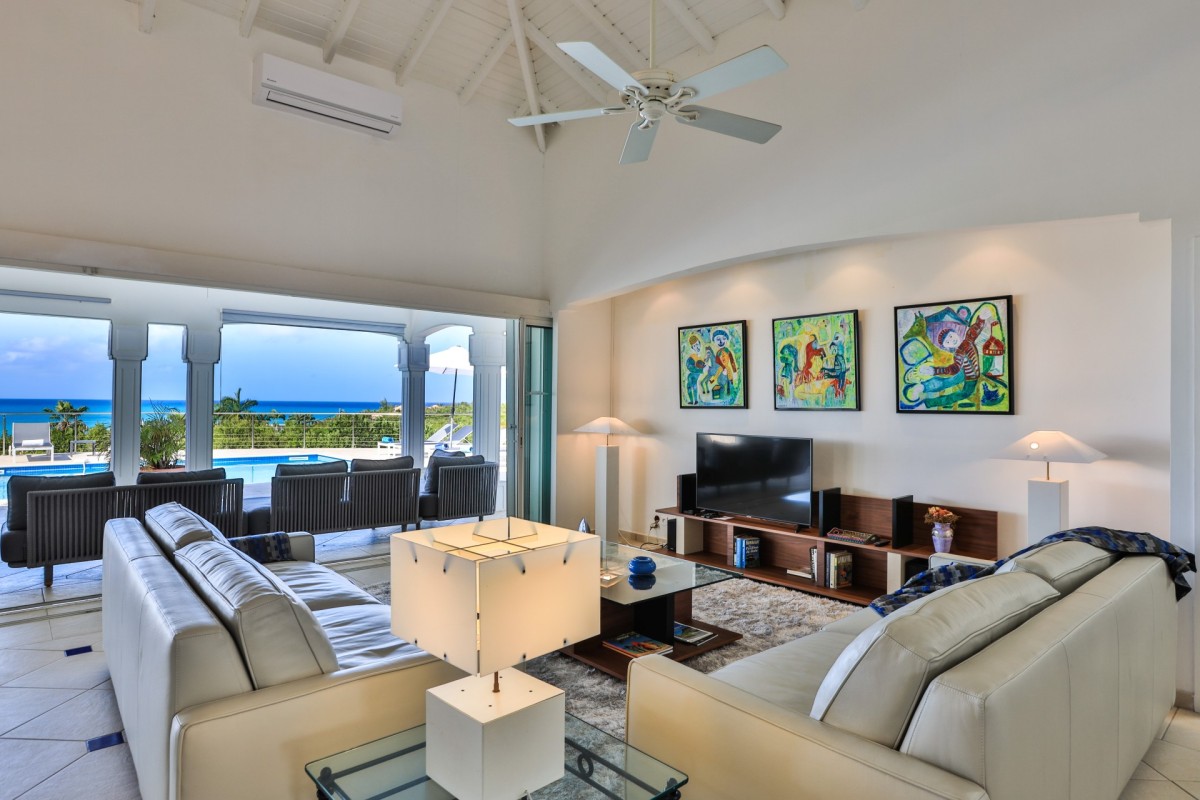 The Villa Oceane on St Martin is located in the exclusive gated community of Terres Basses just minutes away from the pristine Plum Bay Beach. This charming, family friendly villa is set amongst a gorgeous, flowering luscious green garden and the villa itself commands sweeping, stunning views of the nearby Caribbean Sea. Mediterranean in architecture, the interiors are spacious and elegantly furnished with a combination of wood, rattan and iron and glass pieces.