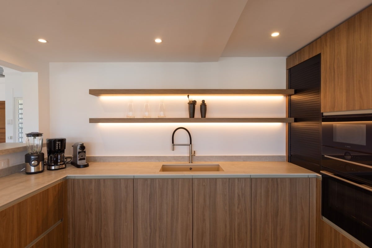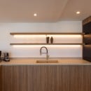 The brand-new, fully equipped kitchen combines modern design with everyday practicality. A separate back kitchen leads to the laundry area, adding comfort and convenience, particularly for extended stays.