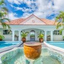 Just outside there is a huge, shimmering blue pool, a handy poolside bar to have a relaxing drink after a vigorous swim and a gazebo adjacent to the state of the art kitchen where you can enjoy your meal as you watch the sun set over the gorgeous azure ocean. This brightly and eclectic designed villa offers exceptional privacy. With large spaces and magical gardens and fountains, every day you stay in this villa, you will feel like you are in absolute paradise.