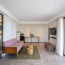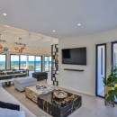 The garden level lounge area is ideal for sunbathing or indulging in a good read, with three oversized resort-style daybeds. For those seeking a retreat, four bedrooms on the main level offer enchanting sunset views, while the three bedrooms on the lower level provide extra-large space and private terraces. A discreet spa room allows for massages catering to up to two people.