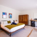 Bedroom 7: Bedroom with a king-size bed, A/C, WiFi, TV, safe, closet, mini fridge, coffee maker, kettle, and private patio, exterior access, garden view and en-suite bathroom with shower, double vanity, and WC. 2 guests maximum. Lower floor