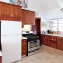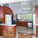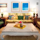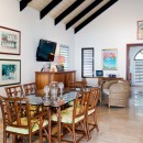 Just inside, the high ceilings and neutral palette capture the stunning light and endless breezes from outdoors, carrying them into the full-sized kitchen with its luxury appliances, full formal dining room, and living room with entertainment system. There is also a small desk for those who need to keep up with work or enjoy the WiFi to do some surfing.