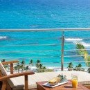 Bedroom 6 (separate entrance): Bedroom with a queen-size bed, living area, kitchen, A/C, TV, ocean view and en-suite bathroom with shower, vanity and WC. 2 guests maximum.